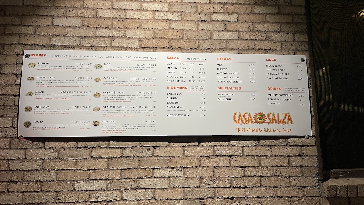 Folded tortilla crisped on the grill and filled with melted cheese. Comes with 6 oz. salza and chips.